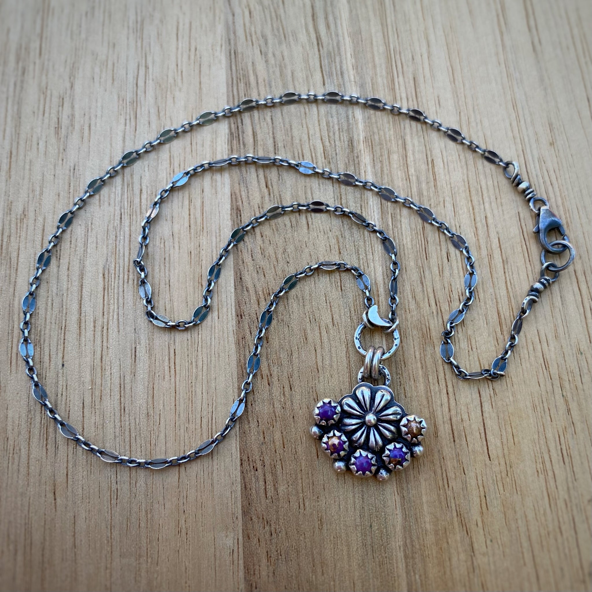 Purple Copper Turquoise Lunar Flower Necklace / 16”
