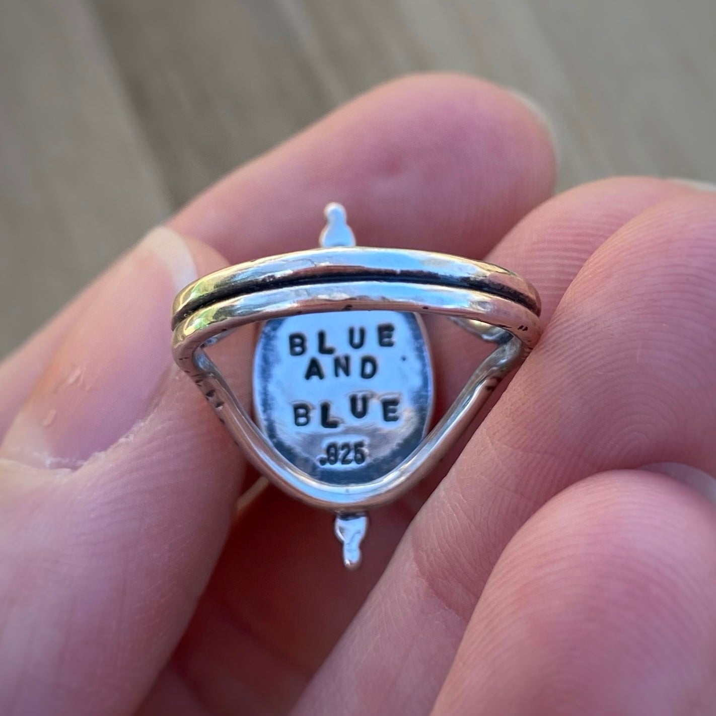 Oxidized and shiny polished finish.