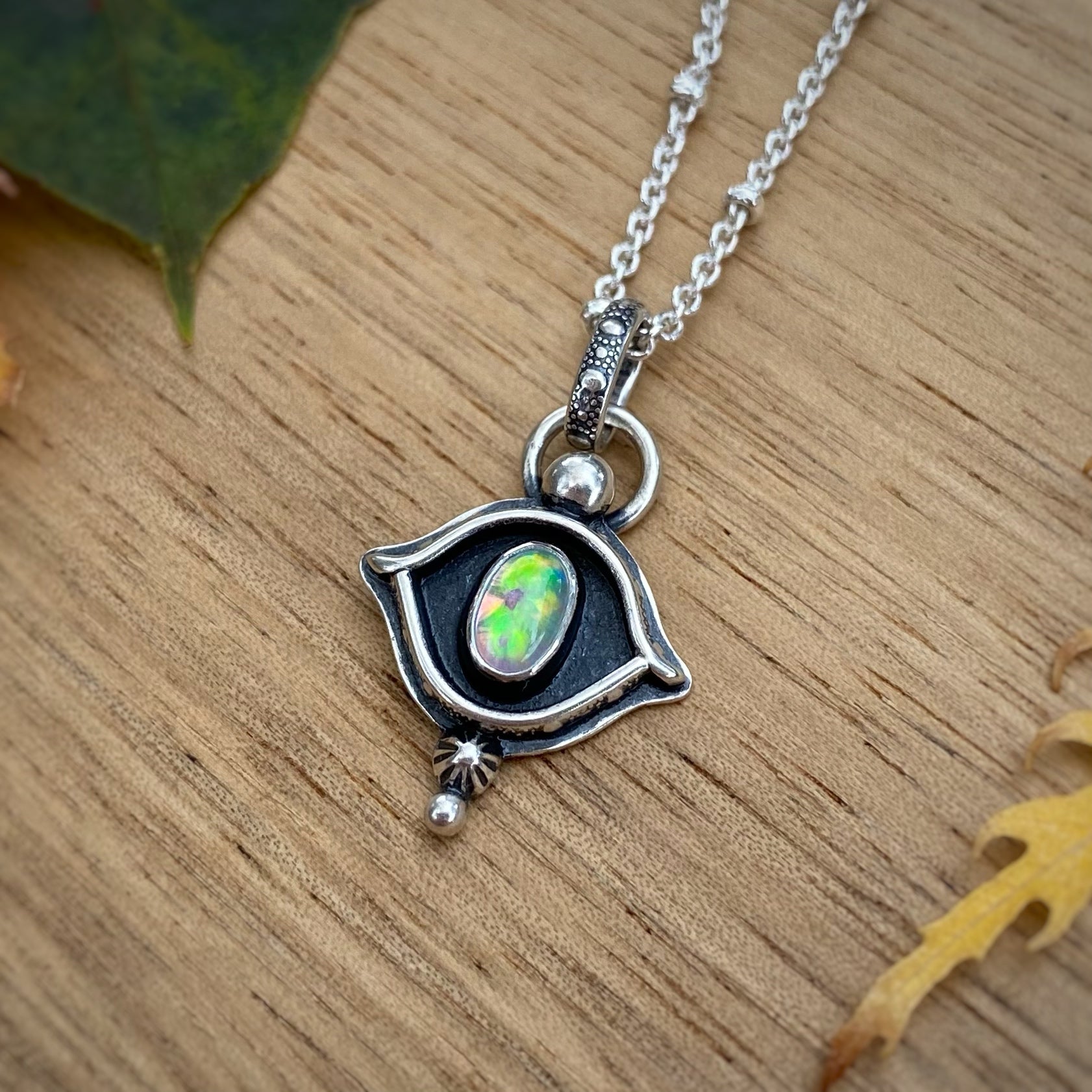 Synthetic Opal Evil Eye Necklace / 16”